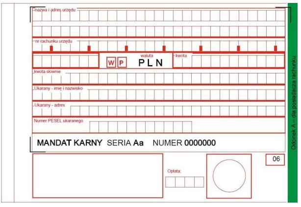 W przypadku zagubienia mandatu karnego kwotę należy wpłacić na konto: