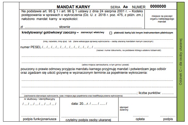 Mandat karny zaoczny należy uiścić w terminie 14 dni od daty wystawienia.