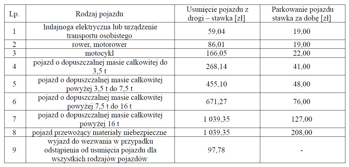 W przypadku usunięcia pojazdu na mocy Uchwały nr XIII/241/25 Rady Miasta Zabrze z dnia 27 października 2025 r. w sprawie ustalenia wysokości opłat za usunięcie pojazdu z drogi na terenie Miasta Zabrze i jego parkowanie na parkowaniu strzeżonym to: